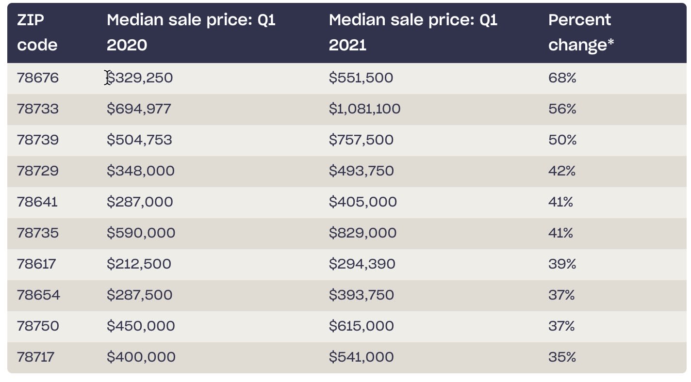 Even in post covid numbers, the west side of Austin has continued to increase in property values year over year.